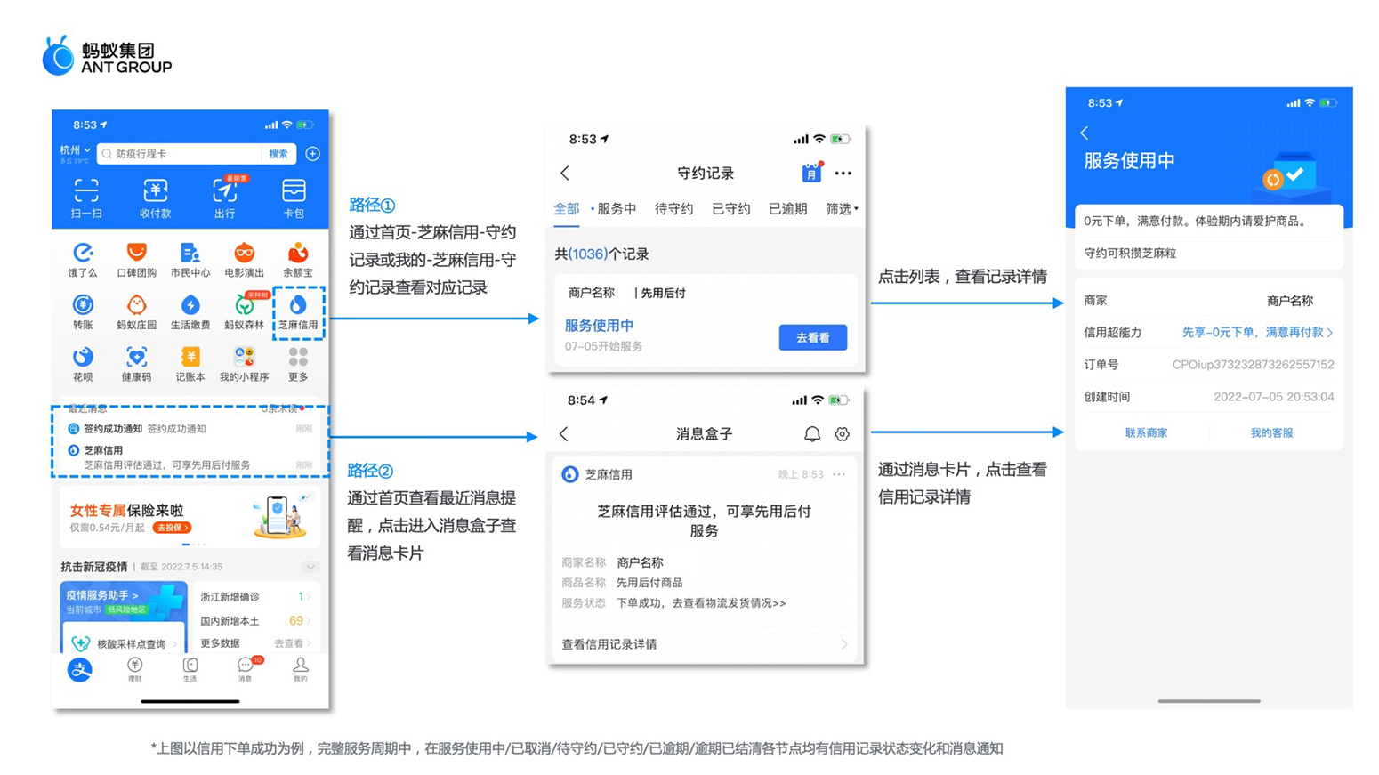 的服务类产品,旨在为商家提升商业效率的同时,为用户创造 因为信用,所以简单 的便捷生活方式。 为商家提供了经营手段,可以应用于购物、物流、出行、教育等各种在场景中, 用户先享服务后付费,增强用户使用服务的信任度和便捷性。从而